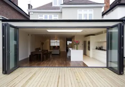 Create open, airy living spaces with aluminium bifolding doors. Perfect for kitchen extensions and garden rooms.